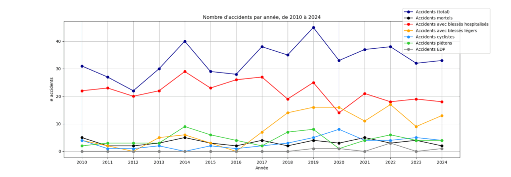 Accidents de la route dans le Pays de Gex, de 2010 à 2024